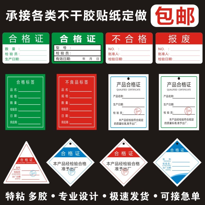 合格证标贴通用不干胶贴纸logo定做pvc标签商标小广告设计定制